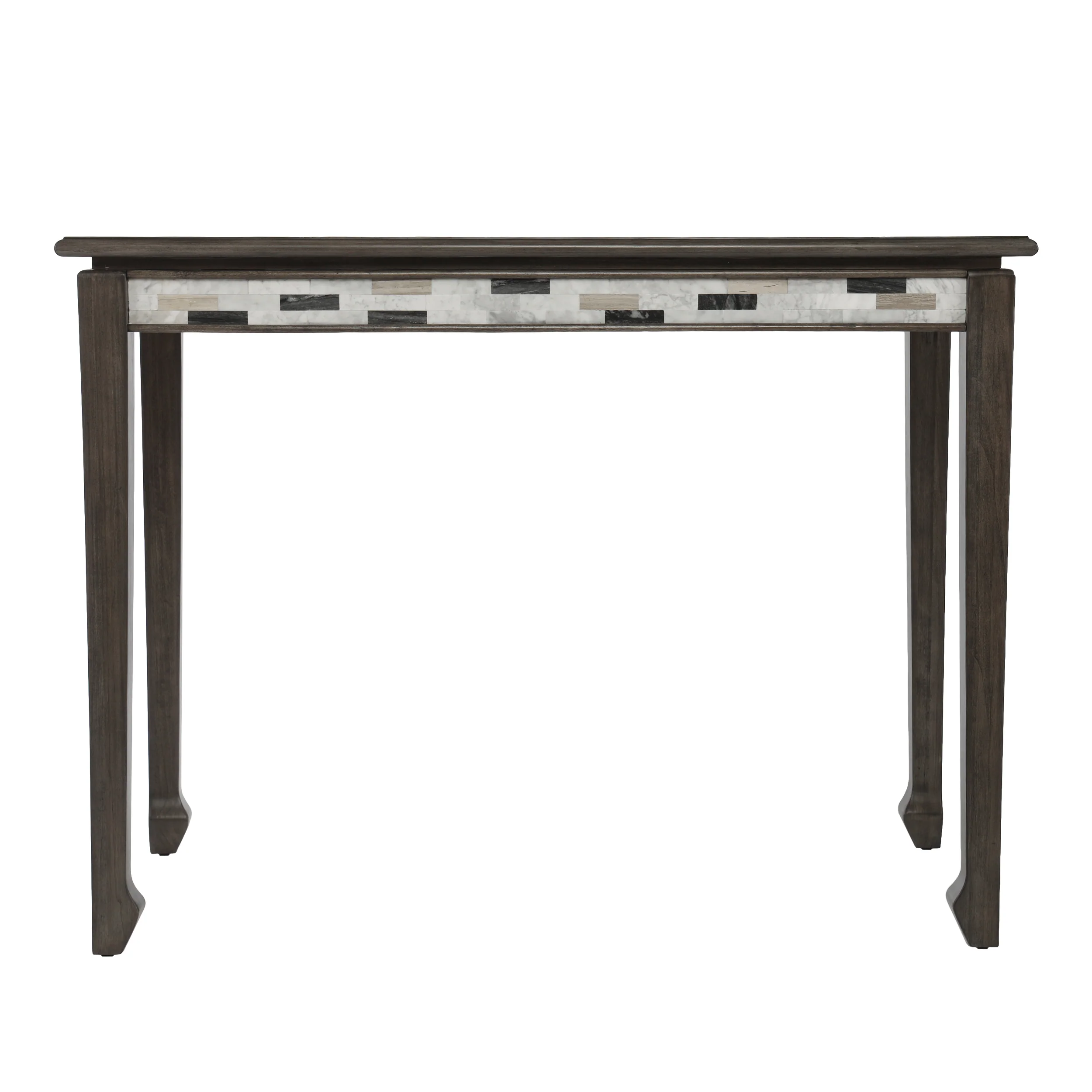 Elevate your dining experience with this traditional counter height-table. A dark gray finish complements the black and white marble apron, crafting a classic look. Curved Chinese styled feet provide an update on traditional décor. Slide this versatile table into your game room and serve up drinks with friends or place in your dining room for an upscale family dinner.